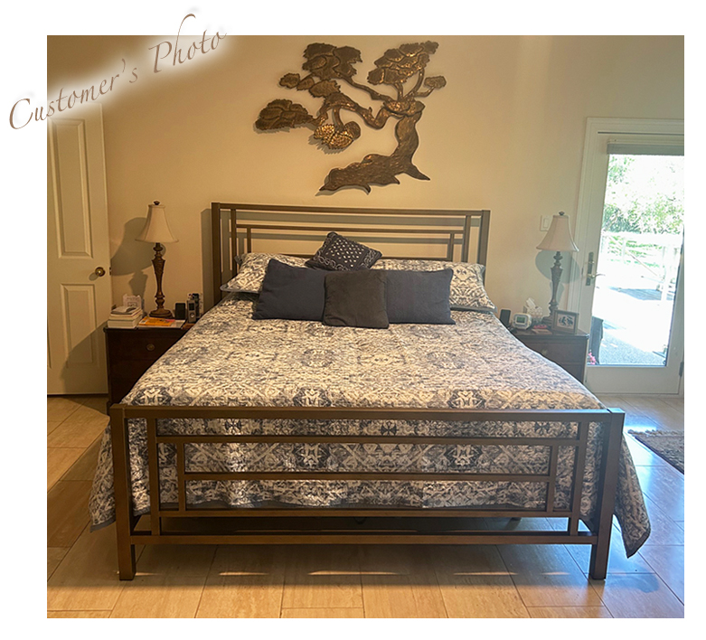 "Our bed arrived today, and I already put it together. Fits great, king bed over a sleep number split king mattress with head and foot adjustments. I was even able to install the cross supports designed for use with box spring, and they do not clash with the sleep number pedestal or the motors. Goes perfect with our metal banzai tree above it, which we bought 30 years ago."